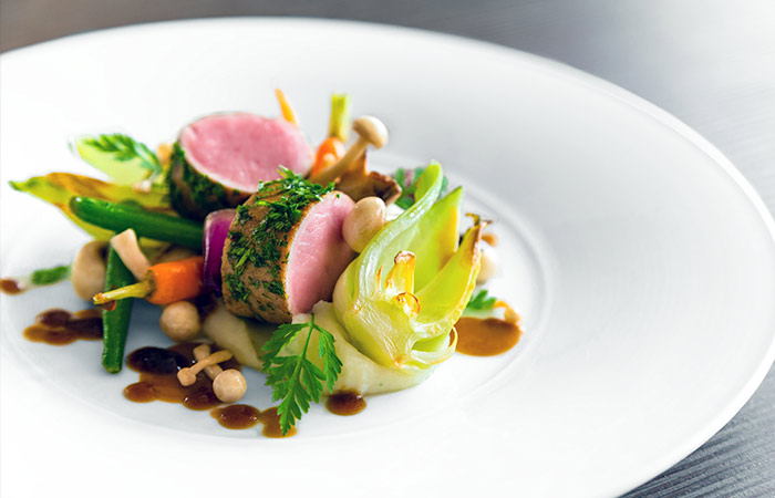 The Chef and his kitchen brigade are delighted to welcome you to the restaurant AB Restaurant Villa Pascucci The peaceful atmosphere of an elegant setting, which boasts Art Nouveau furniture and large windows overlooking the garden and the pool.